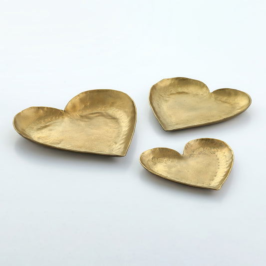 Coeur Brass Hammered Iron Heart-Shaped Catchalls - Set of 3